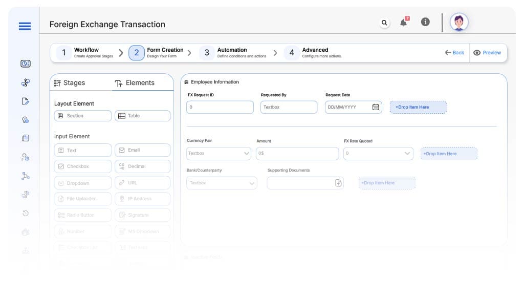 Foreign exchange (forex) transactions are high-risk, high-value operations that require strict oversight, regulatory compliance, and multi-level approvals. In many organizations, these transactions are still processed manually via emails, spreadsheets, or informal chats between treasury and finance teams, leading to delays, errors, and compliance gaps.