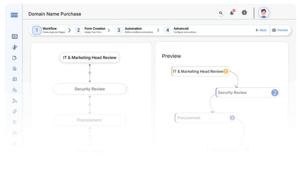 Purchasing a domain name may seem like a simple task, but in most organizations, it involves multiple approvals, cross-team coordination, vendor validations, and compliance checks. Without automation, this process often gets delayed by email chains, unclear ownership, and a lack of budget tracking, causing missed opportunities or inconsistent domain management.