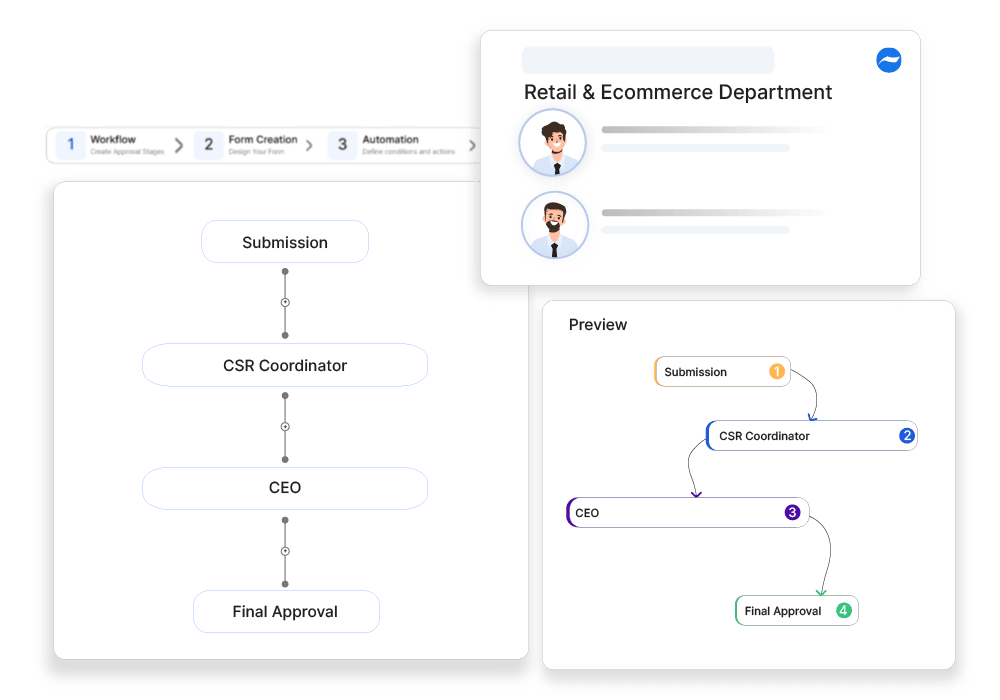 All retail and e-commerce companies need to fulfill their corporate social responsibility (CSR) by conducting initiatives that contribute towards improving society and environment. Before conducting any CSR event or activity, proper approvals are required from CSR managers and other stakeholders from legal and finance teams. The very purpose of conducting these initiatives is defeated when companies follow archaic manual methods. Added to the delays and errors, manual approval workflows are ridden with lack of transparency and visibility into the status of requests. A well-structured and organized workflow for reviewing and approving all the corporate social responsibility program requests can simplify the process greatly and accelerate the rate of approval. Cflow can bring standardization into the manner in which CSR approvals are handled within the organization. The visual workflow builder in Cflow can be used to implement a structured approval workflow where all CSR programs are carefully reviewed and approved before they are launched.